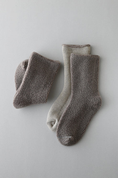 種類を増やすというよりは、今ある定番の商品を常に見直し、より良いものに繋げていきたい、そして、少しずつでも履き心地や使い勝手を高めて、履いてくださっている方に喜んでいただきたいと思っています。自然素材の靴下は、どうしても人間が開発した化繊より弱い。だから耐久性のことも考えて長く履いていただける形状、肌に直接当たらない部分での裏糸使いなどひとつひとつ深掘りしながら、少しでも良いものにしていきたい。そして社会背景やサスティナブルの観点から、大量の農薬を使うコットンの使用を少しずつ減らし、可能な限りオーガニックコットンの使用を増やしていきたい。ただ、原材料がずっと上がり続ける状況の中で、日常履きの靴下をより高価な靴下にはしたくない。また「色の持つ力」を信じてるのでカラーバリエーションも大切に、そのすべての中間地点を模索していきたいと思っています。それぞれの素材の良さを理解し好相性な素材を組み合わせることで、それぞれに飽きのこない履き心地へと繋げていきたいのです。また身体の外側だけでなく、身体の内側からもアプローチいただけるよう食のセレクトも。これからも、楽しんでいただけるよう日々努力を続けてまいりますので、どうぞよろしくお願いいたします。