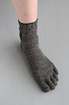 麻はシャリ感のある爽やかな素材ですが、糸が強い反面、硬く切れやすく、編み立ての難しい素材です。これまでの麻の五本指は、その特性ゆえにしっかりとした厚みがあり、真夏日に履くには少し重たく感じることもありました。それでも「麻100%が良い」というお声に応えたい。 より軽く、もっと履きたくなる一足を目指して、あらためて見直しました。