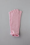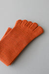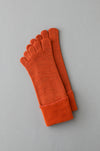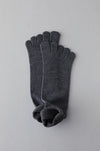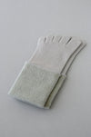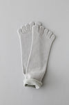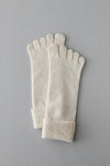 肌にあたる内側をシルク100%、外側をウール100%の糸で編みあげた二層構造の五本指靴下。 シルク糸を贅沢に使ったパイル編みが足に心地よく、吸湿性の高いウールの特性でいつも足はさらさら快適。 足の肌着の感覚で1枚目に。 カカトが無いフリーサイズなので、上下左右を入れ替えて長くお使いいただけます。 絹と綿の五本指靴下より、ふっくらとした履き心地。 綿よりも吸湿性、放湿性に優れているため、お洗濯後も綿より早く 乾きます。洗濯による縮みに対応できるよう足指の長さを大きくとり「五本指「足の肌着」絹と綿」にはある足底部分のゴムを外しました。